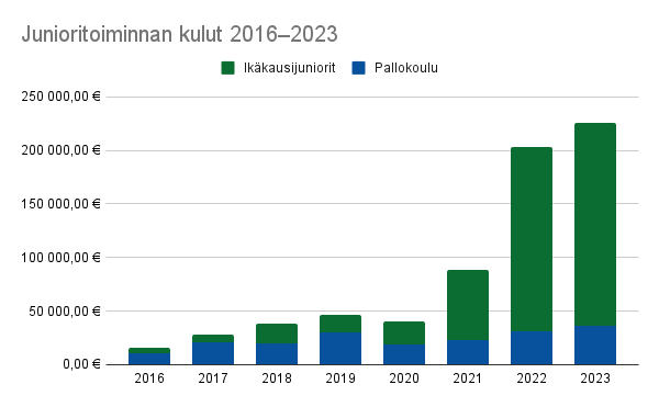 Seuran suurin osa oli edellisvuoden tapaan junioritoiminta, jonka kulut kaudella 2023 olivat 226 541.35 € eli 44,5 % seuran kuluista, kattaen ikäkausijuniorit, pallokoulun ja lapsi-aikuisryhmät. Toiseksi suurimman osuuden eli 34,8 % kuluista vei miesten edustusjoukkue 177 079,20 €:n kuluillaan. Muut kulut jakautuivat seuran muille aikuisjoukkueille sekä seuran hallinnolle.