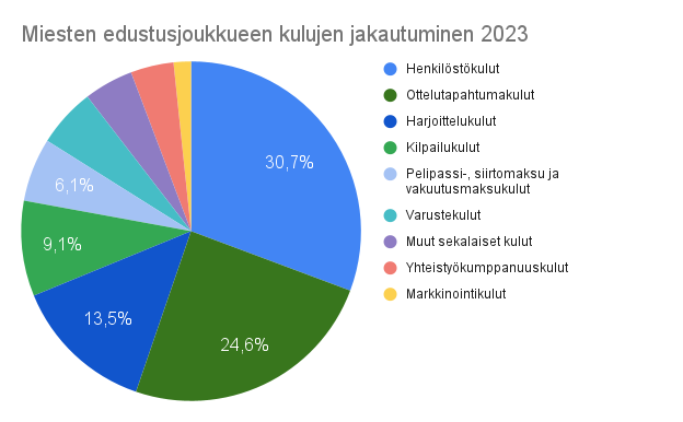 Miesten edustusjoukkueen tulos oli kaudella 2023 peräti 30 556,78 € alijäämäinen. Osasyy alijäämään oli kasvaneessa pelaajabudjetissa ja ottelutapahtumien henkilöstökuluissa. Näitä ei pystytty kuromaan kiinni tulopuolella, vaan päin vastoin edustusjoukkueen tulot pienenivät samaan aikaan kun kulut kasvoivat. Kaikkiaan miesten edustusjoukkueen kulut olivat 177 079,20 € sisältäen myös varainhankinnan kulut.