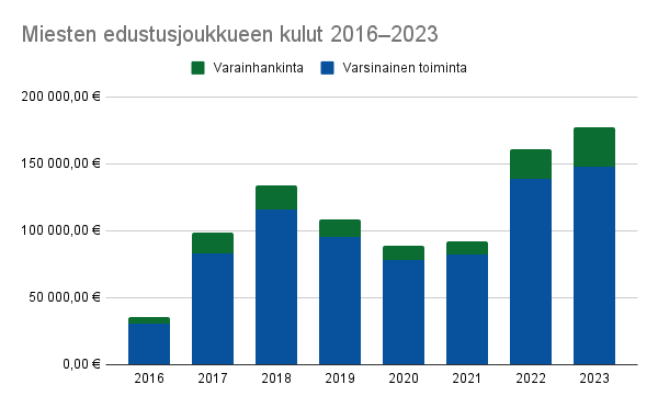 - Miesten edustusjoukkueen menot 177 079,20 €
