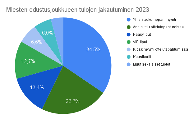 Erityisen harmillisen tärkeiden yhteistyökumppanien poisjäännistä tekee se, että muutoin miesten edustusjoukkueen tulopuoli toimi erinomaisesti. Yhteistyökumppanuuksien myyntiä oli lopulta 50 513,92 € joka on vain vajaa 9 000 € vähemmän kuin edellisenä vuonna.