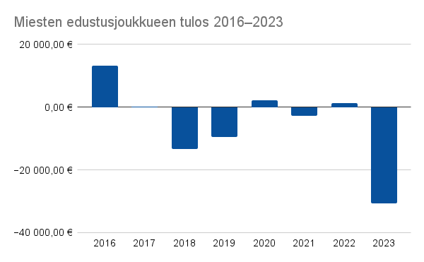 - Miesten edustusjoukkueen tulos 30 556,78 € alijäämäinen
