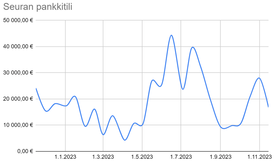 Seuran maksuvalmius oli koko tilikauden ajan kohtalaisen hyvä. Se oli tyypilliseen tapaan heikoimmillaan maalis-huhtikuussa ennen joukkueiden kesäkausien alkua.