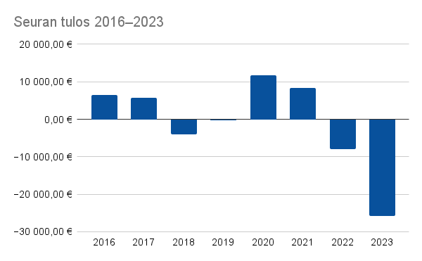 Taloushaasteiden taustalla on ennen kaikkea kauden 2023 heikko taloudellinen tulos, sillä päättyneen tilikauden tulos on yli 25 000 € alijäämäinen. Suurin yksittäinen syy alijäämään on miesten edustusjoukkueen yhteistyökumppanuuksien myynti, joka onnistui muutoin hyvin, mutta muutaman suuren yhteistyökumppanin jääminen pois muun muassa konkurssien takia teki ison loven tuloihin.