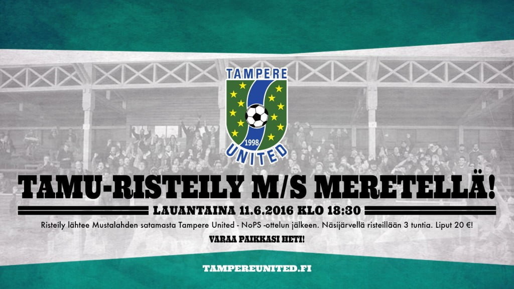 Tampere United järjestää lauantaina 11.6. risteilyn Näsijärvellä m/s Meretellä. Laiva lähtee Mustalahden satamasta klo 18.30, joten risteily toimii samana päivänä klo 15 pelattavan TamU – NoPS -ottelun virallisena jatkopaikkana. Risteily kestää kolme tuntia. Laivalla ei ole anniskeluoikeuksia, joten risteilylle on mahdollista tuoda omia juomia.